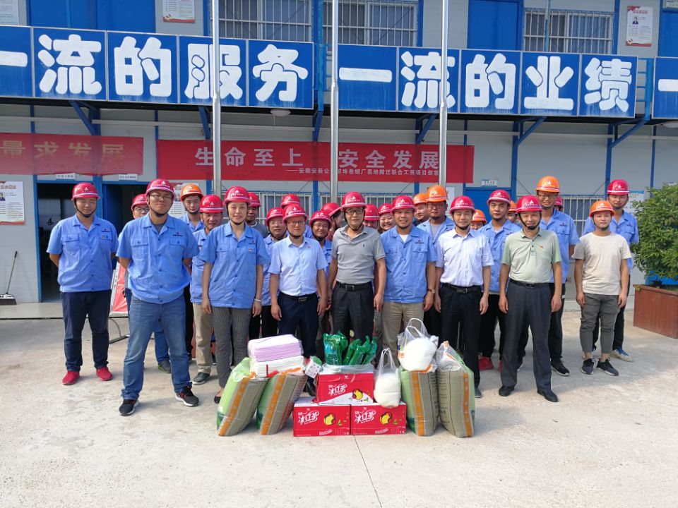 7月31日,副總經(jīng)理劉安俊,紀(jì)委書(shū)記、工會(huì)主席李寬旭到蚌埠分公司的蚌埠卷煙廠易地搬遷項(xiàng)目部,送去了綠豆、毛巾、藿香正氣液等防暑降溫物品,叮囑他們要克服高溫帶來(lái)的困難,做好防暑工作,并注意休息;同時(shí),要求落實(shí)好夏季送清涼工作,維護(hù)廣大職工的健康權(quán)益,切實(shí)將“情系職工、夏送清涼”活動(dòng)落實(shí)到安全生產(chǎn)工作中。